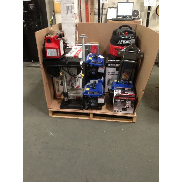 Fully Manifested truckloads of tools from a famous tools chain store; These loads typically contain items like compressors, Hand tools, Power tools, sanders drilling tools, cables, welding machines, nail guns, and much more